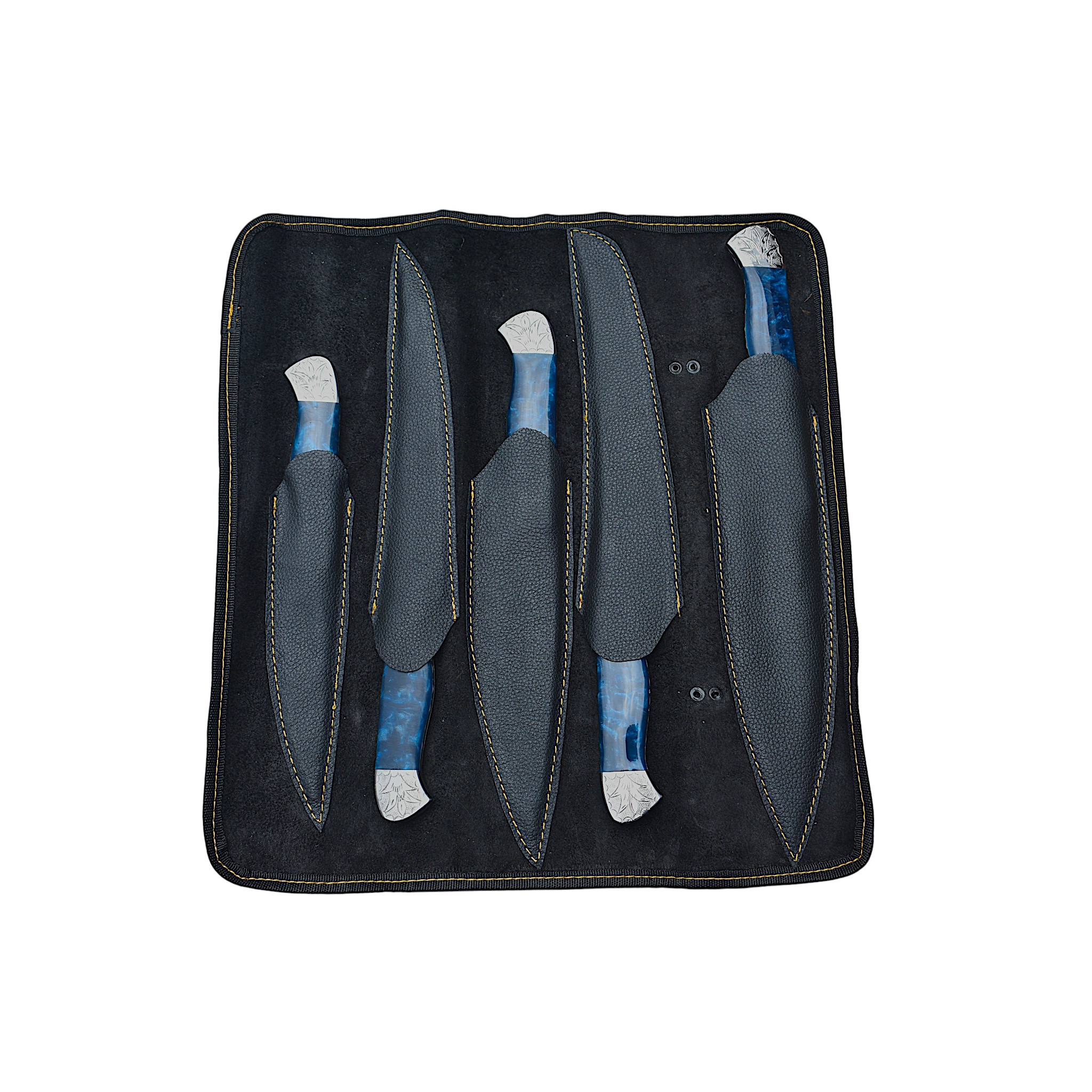 Ornate Bolster Culinary Knife Set (Blue Resin)