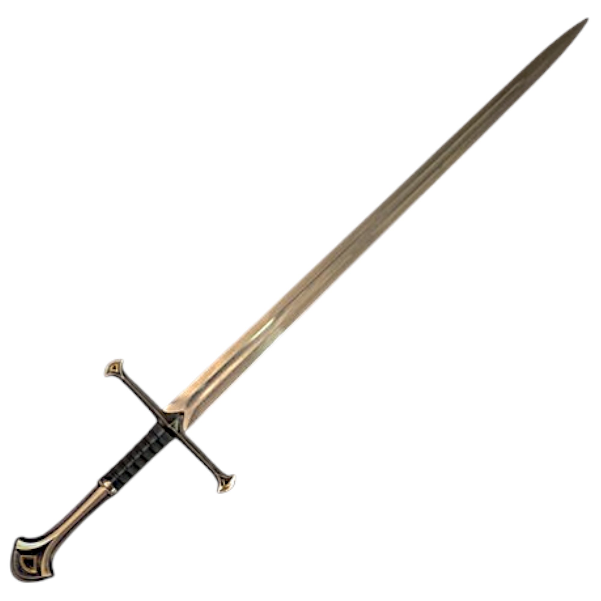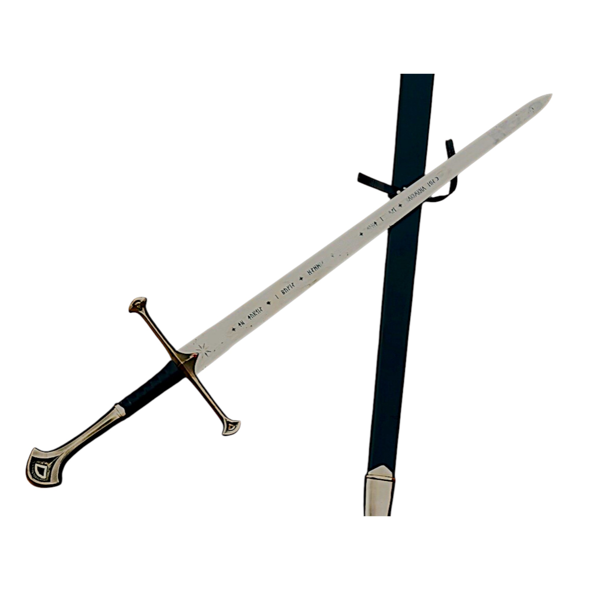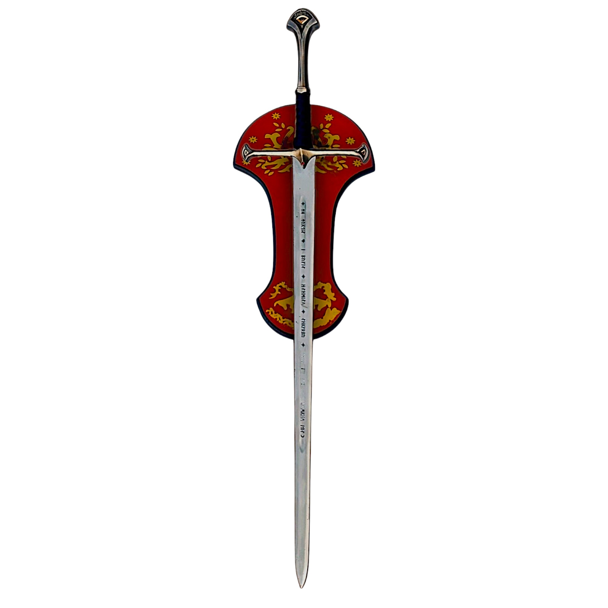 Command respect and inspire awe with this magnificent full-size replica of the legendary sword wielded by the rightful King of Men. Meticulously crafted with a gleaming blade featuring elegant script and a regal hilt, this piece embodies courage and destiny. It comes complete with a beautifully ornate wooden display plaque, allowing you to proudly showcase this iconic fantasy sword as a centerpiece in your collection, office, or home. Perfect for enthusiasts of epic tales and collectors of heroic weaponry.